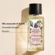 Essences Botaniques è una gamma di Aromacologia che ha lo scopo di innescare benefici sulla mente tramite sensazioni olfattive: per compiere questa funzione, non è necessario che gli Oli essenziali siano presenti in alta concentrazione o visibili in formula INCI (a differenza dell’Aromaterapia, che, attraverso gli oli essenziali puri, vanta fini medicali).